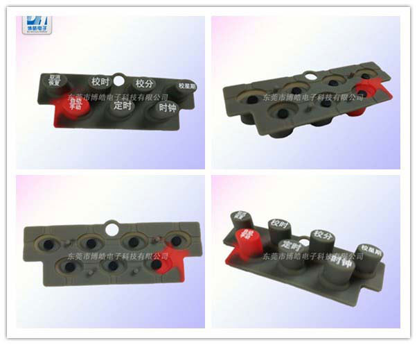 在博皓硅膠制品生產(chǎn)的電子定時(shí)器硅膠按鍵采用的是模壓成型,字符采用的是單色絲印,背部導(dǎo)電采用的是導(dǎo)電黑粒,硅膠硬度在60°±5,按鍵使用壽命達(dá)到上百萬(wàn)次。
