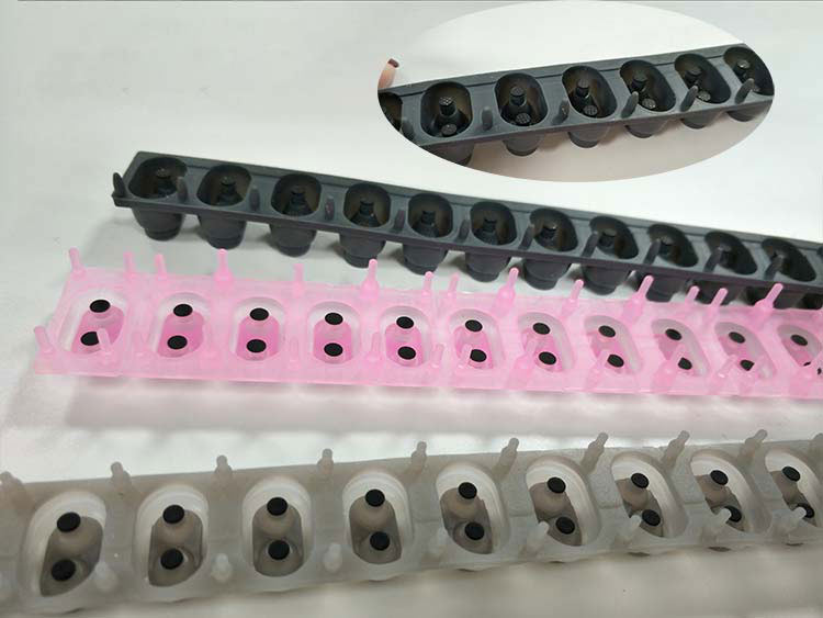 對硅膠按鍵有經(jīng)驗的人就知道,硅膠按鍵導(dǎo)電方式有很多種,比如黑粒、油墨、鍋仔片等等....而那個接觸點我們稱其為“觸點”,今天我們要講的是鋼琴硅膠按鍵,這導(dǎo)電膠按鍵背面有著雙觸點,這鋼琴硅膠按鍵為何雙觸點高度不一樣?雙觸點有什么作用?