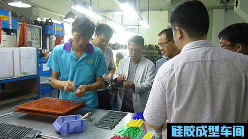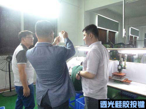 上圖為Cisco領(lǐng)導(dǎo)對我司生產(chǎn)的透光硅膠按鍵進行了解。