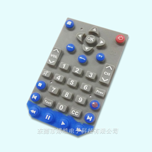 - 這是一款用于有線數(shù)字電視機(jī)頂盒的遙控器按鍵,采用硅膠原材料制造而成,在每個(gè)小按鍵的底部都配有導(dǎo)電油墨,可以起到導(dǎo)電效果。博皓電子也可為客戶提供鐳雕工藝、黑粒導(dǎo)電工藝的硅膠按鍵產(chǎn)品。