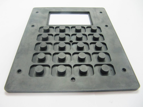 - 這是一款通道通信終端上的硅膠按鍵,表面注塑硅膠膜,采用硅膠原材料模壓成型。