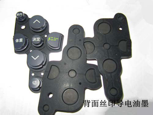 產(chǎn)品底部的硅膠按鍵除了取到內(nèi)襯按鈕的作用以外,還增加了背面絲印導(dǎo)電油墨的工序,使產(chǎn)品具體導(dǎo)通電源的功能。