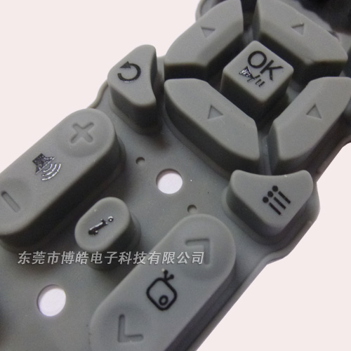 - 這是一款用于有線數(shù)字電視機頂盒的遙控器按鍵,采用硅膠原材料制造而成,在每個小按鍵的底部都配有導(dǎo)電油墨,可以起到導(dǎo)電效果。博皓電子也可為客戶提供鐳雕工藝、黑粒導(dǎo)電工藝的硅膠按鍵產(chǎn)品。